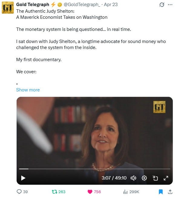 It was Shelton’s strong support for a dollar backed by gold that got her brutally attacked during her 2020 Senate confirmation for the Federal Reserve. Senators called her ideas “nutty,” claimed she wasn’t an economist, and labeled her a “gold bug.” It seemed clear at the time that Washington insiders killed her nomination to protect their addiction to endless government spending.